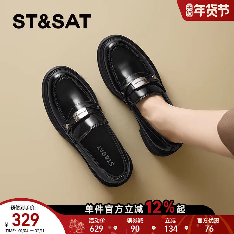 思加图2026新款许愿币英伦风乐福鞋小皮鞋粗跟单鞋女EOQ15AA6