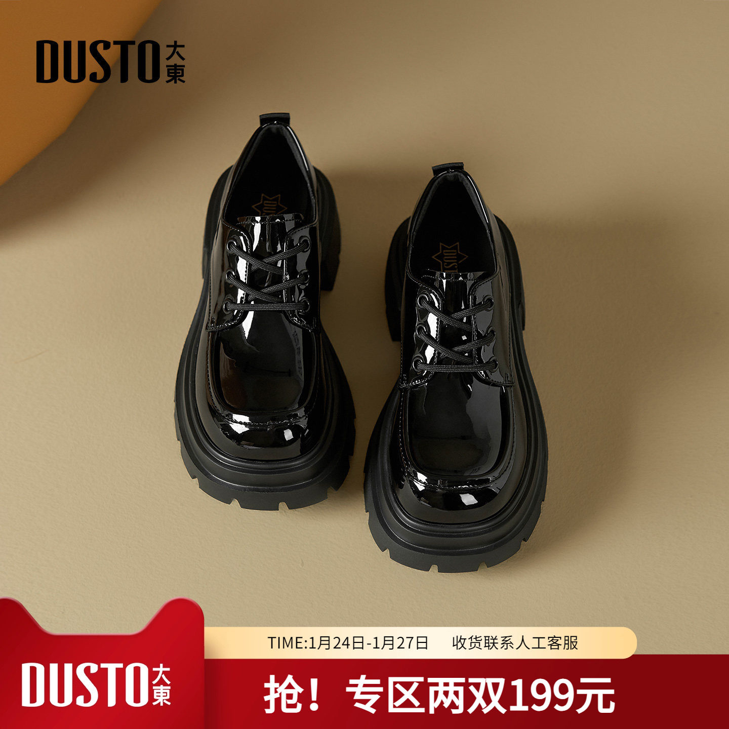 大东乐福鞋女鞋2025秋季新款时尚简约女单鞋粗跟圆头厚底通勤鞋