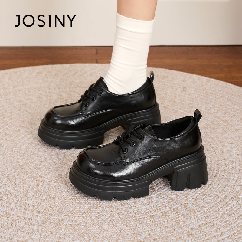 厚底增高小皮鞋女2025新款复古百搭JK单鞋粗跟乐福鞋香香莉031065
