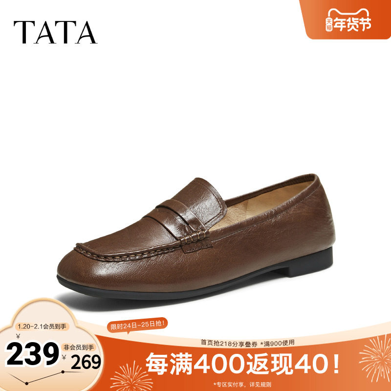 TATA他她乐福鞋2025秋新款时尚简约休闲圆头单鞋粗跟女鞋YXQ01CA5