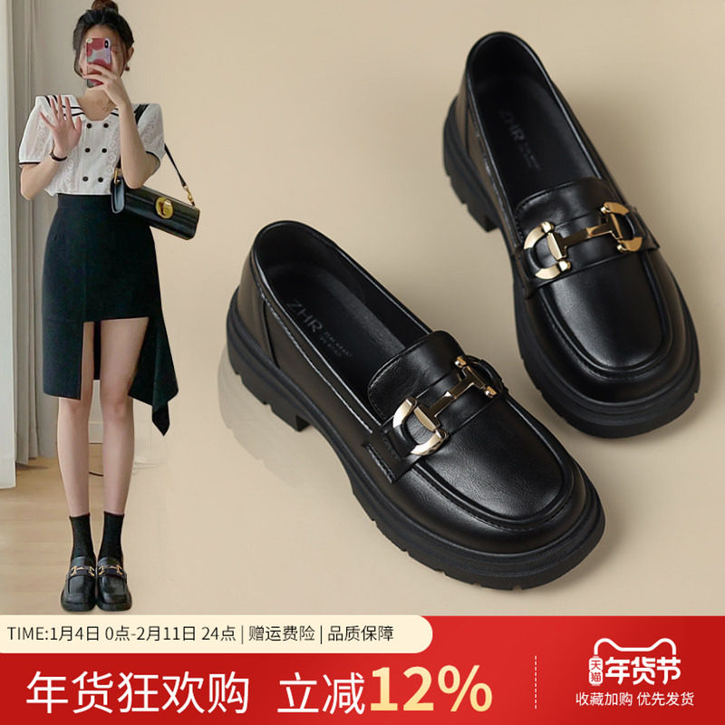 厚底乐福鞋女2024新款jk学院风黑色增高小皮鞋小个子单鞋粗跟高跟