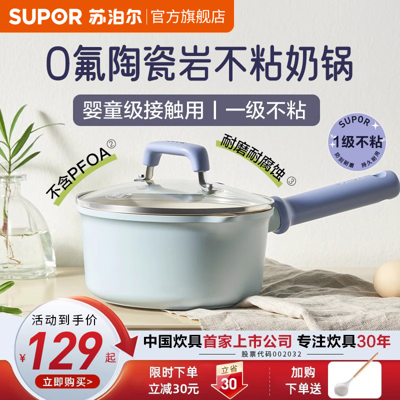 苏泊尔陶瓷小奶锅家用不粘锅宝宝辅食锅婴儿专用煎汤锅煮面泡面锅