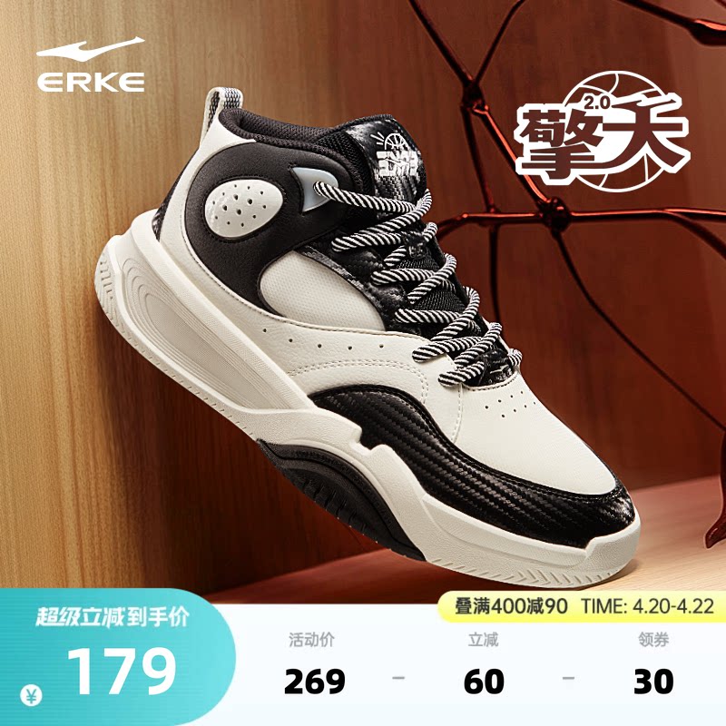 擎天鸿星尔克运动鞋春季新款高帮休闲鞋皮面鞋子男士篮球文化板鞋