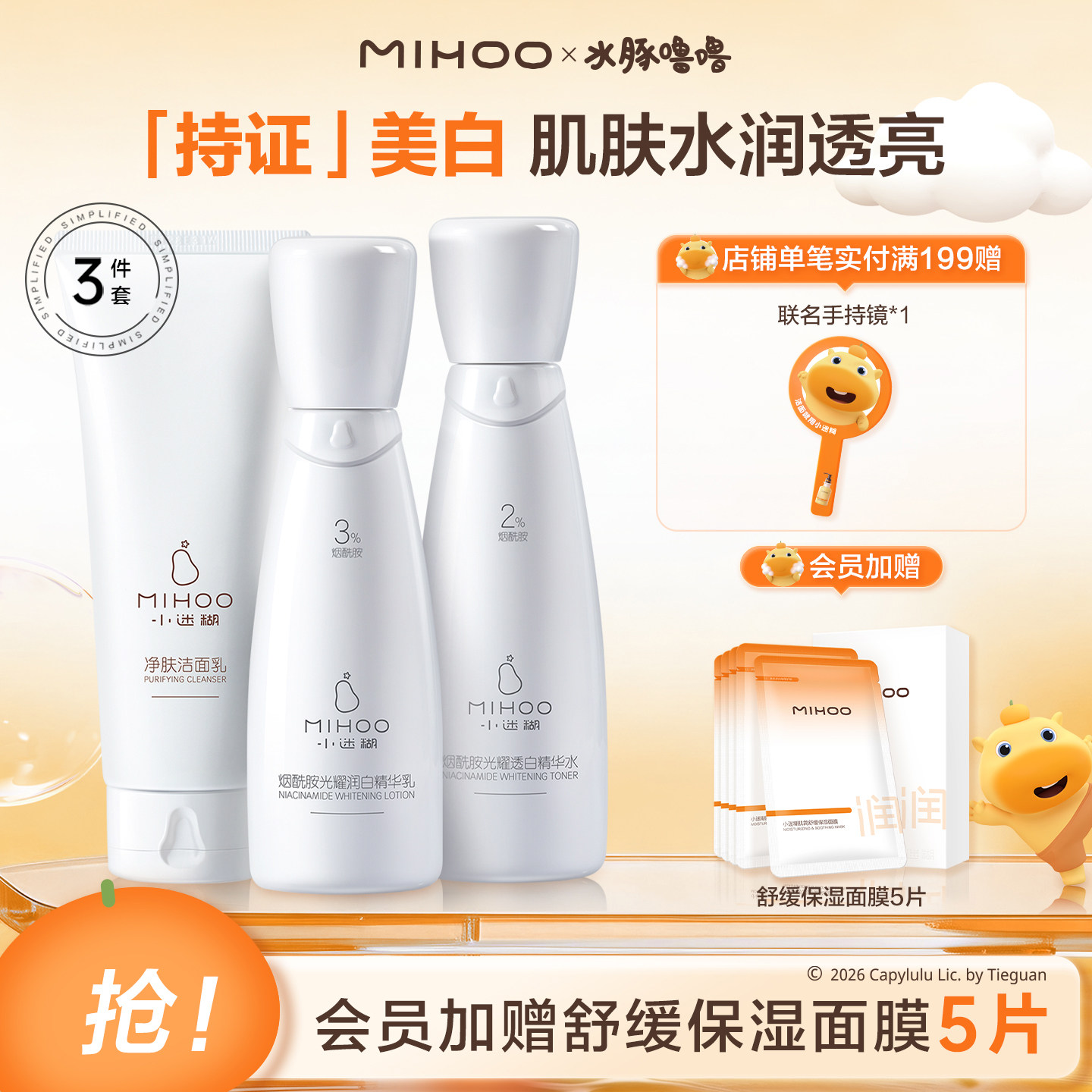 茶漾美白水乳套装护肤品学生补水保湿377虾青素淡斑焕白提亮去黄