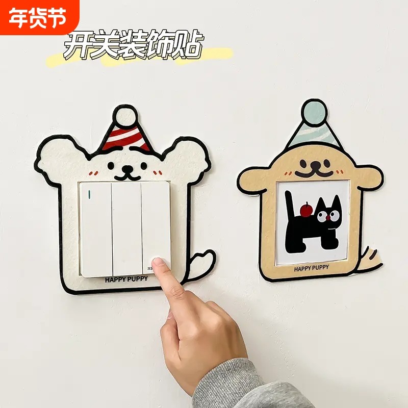 创意小狗开关贴墙贴插座面板遮丑可爱家用墙面装饰壁贴卡通边框套