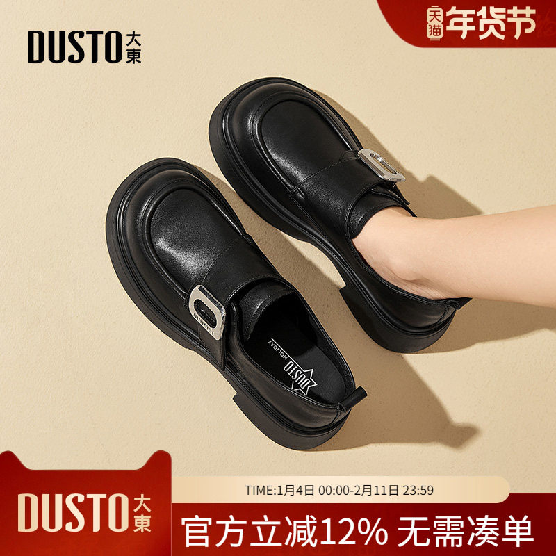 大东厚底乐福鞋女2025新款秋冬jk学院风软底黑色小皮鞋一脚蹬单鞋
