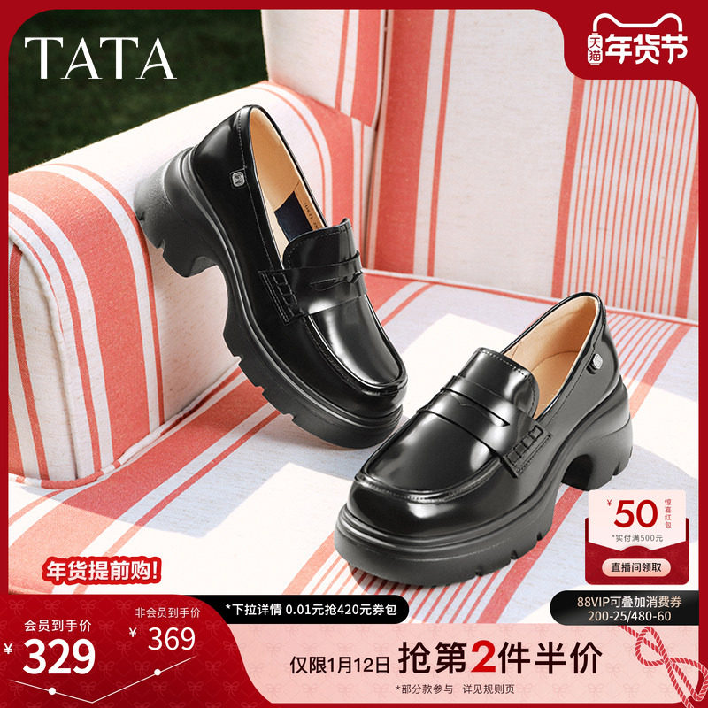 TATA他她玫瑰侦探厚底小皮鞋女黑色乐福鞋女鞋单鞋2025新7DK21AA5
