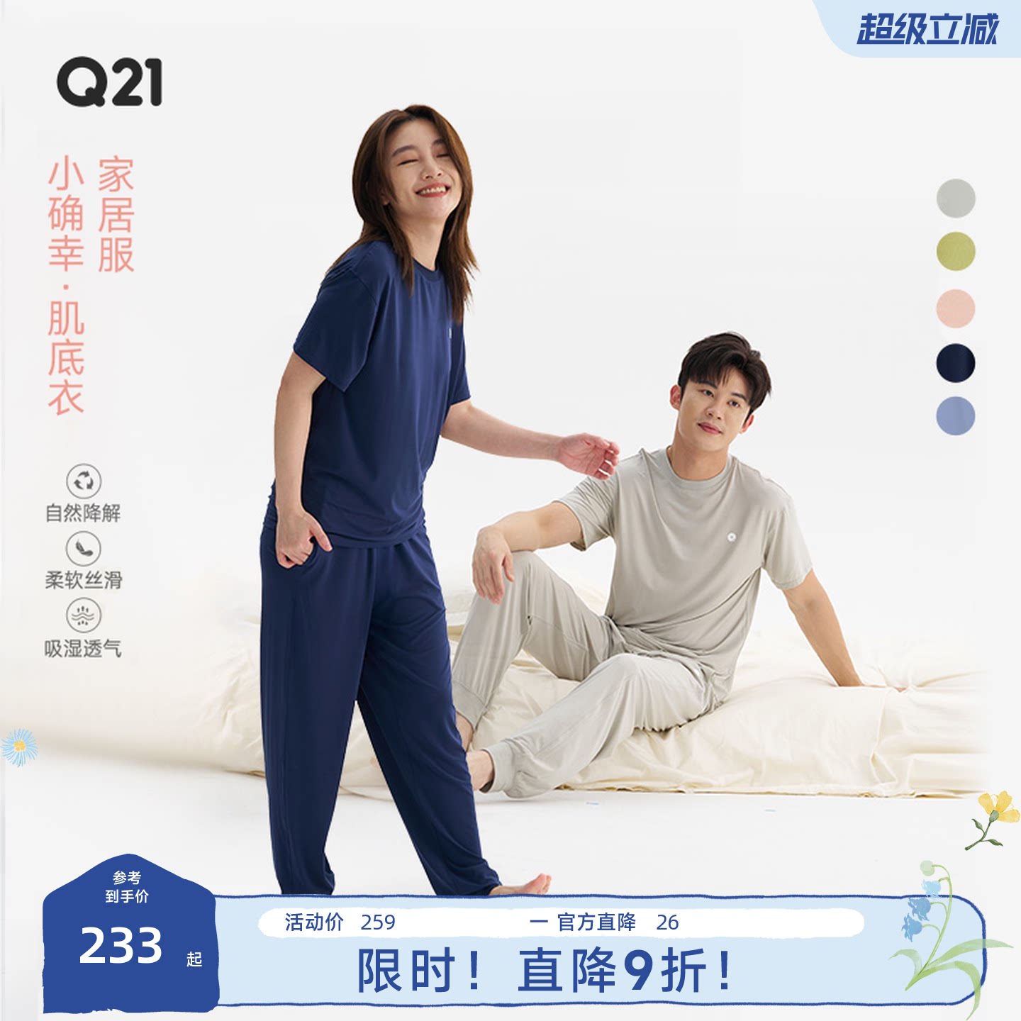 Q21小确幸成人家居服女士80支丝滑睡衣男款柔软透气宽松居家套装