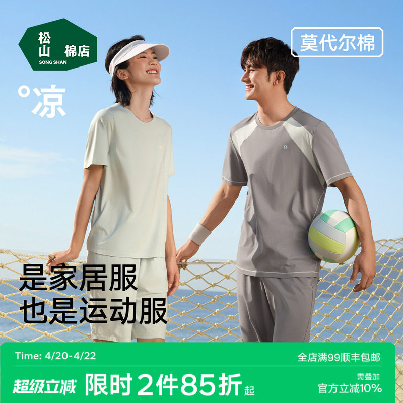 松山棉店小薄荷轻运动睡衣套装女夏短袖情侣家居服男款可外穿冰丝