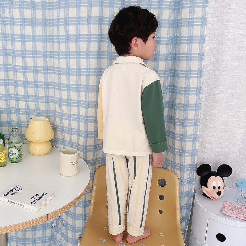 儿童卡通睡衣套装秋冬新款女童可爱翻领家居服男童条纹睡裤两件套