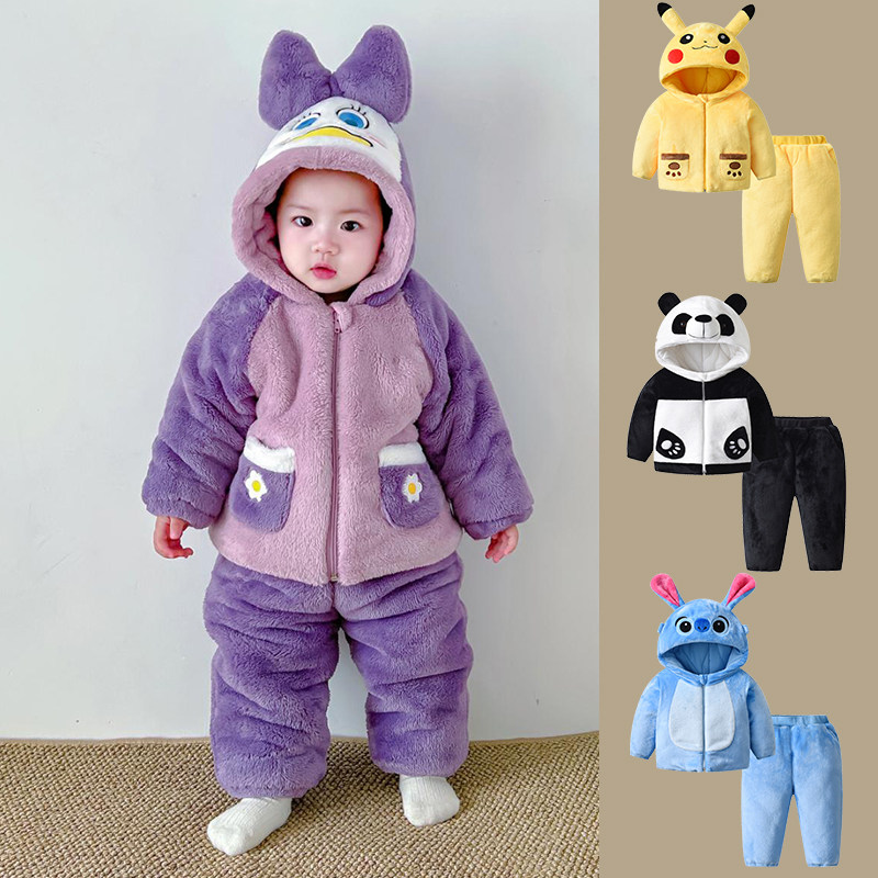 男女宝宝冬季棉衣套装超萌可爱儿童卡通睡衣女童加厚家居服套装冬