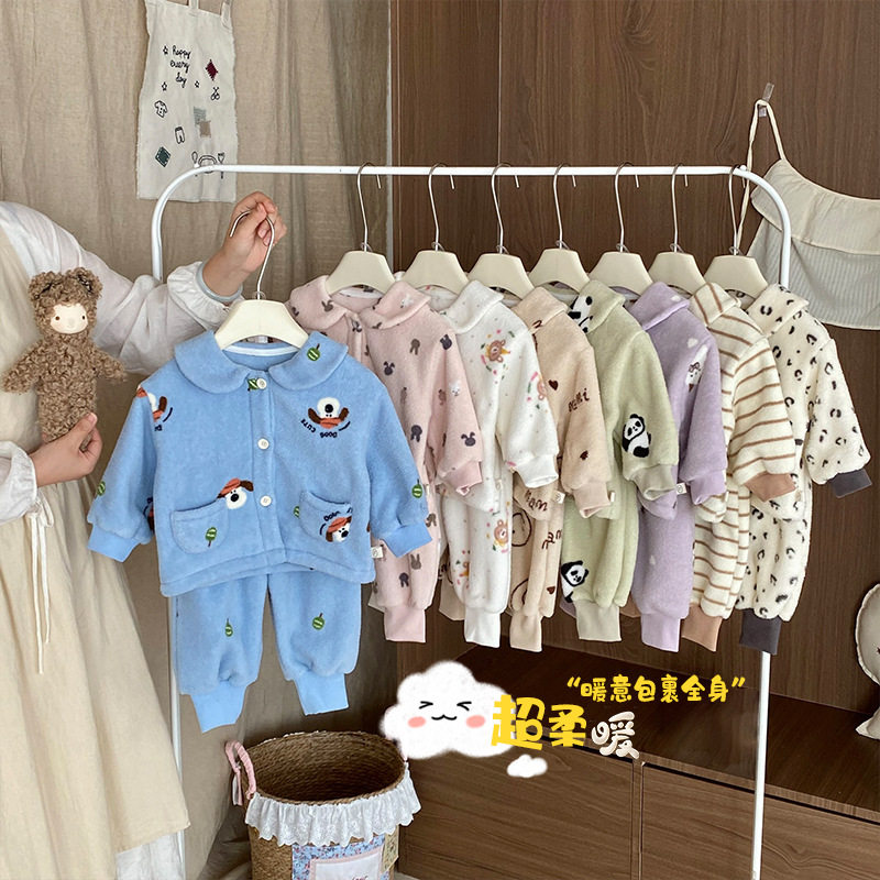 秋冬季款儿童法兰绒睡衣宝宝加厚卡通家居服男童中大童珊瑚绒套装