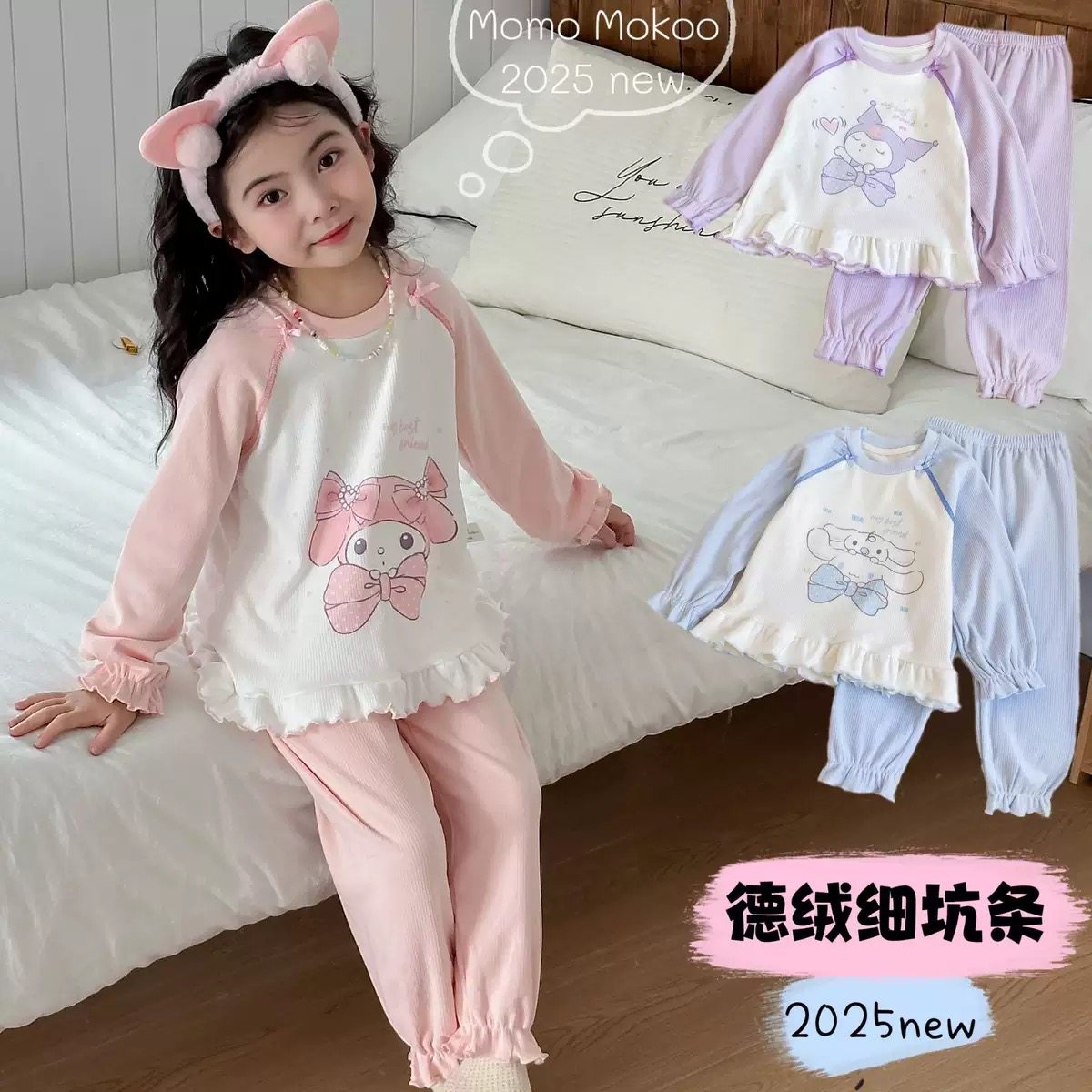 巴布豆童装女童家居服套装2025新款加厚保暖儿童卡通睡衣a类冬装