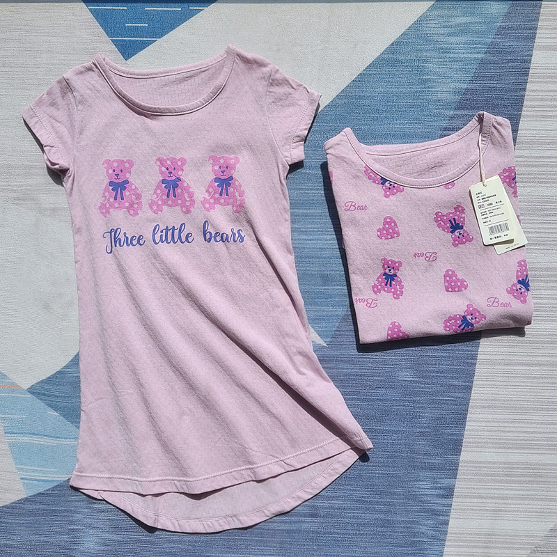 纯棉透气女孩子连衣裙儿童卡通睡衣 短袖公主家居服睡裙宝宝夏装