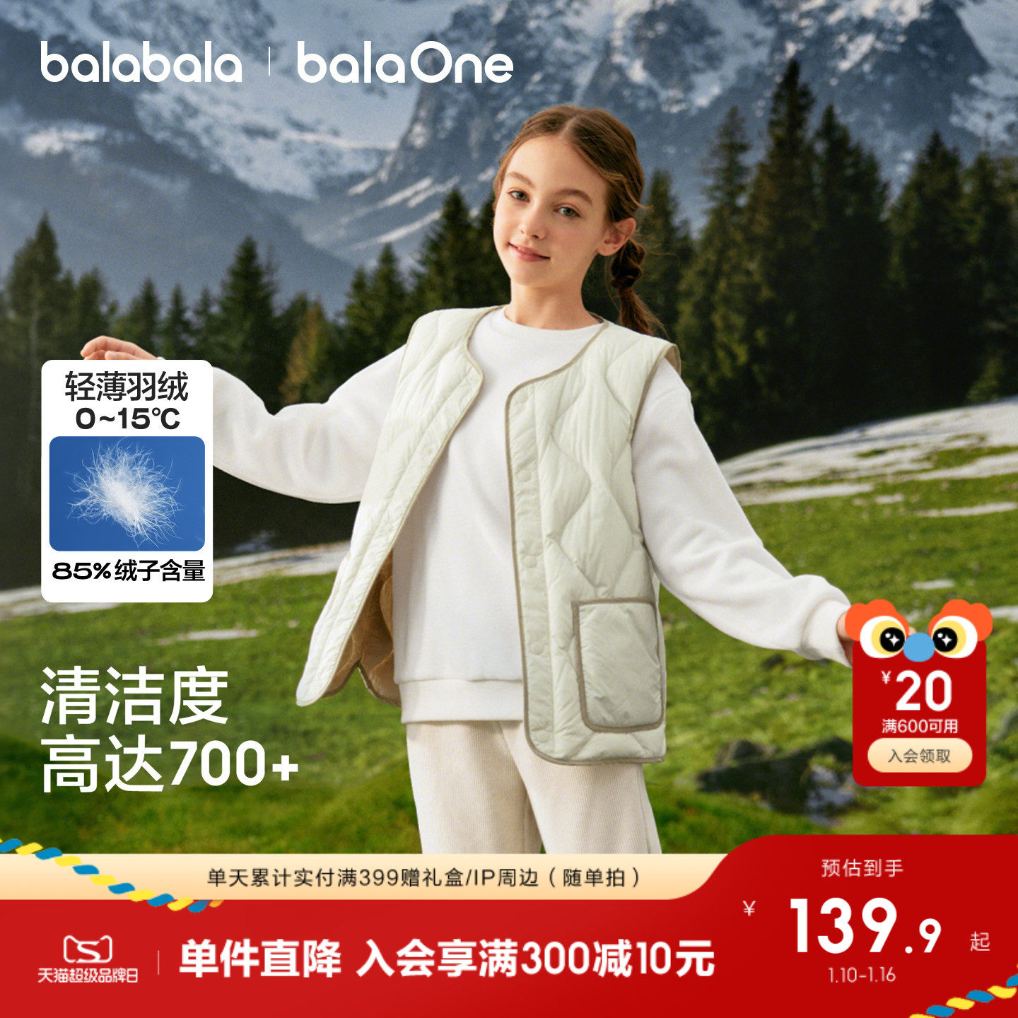 巴拉巴拉童装儿童羽绒马甲秋冬装男童上衣女童外套宝宝亲子装舒适