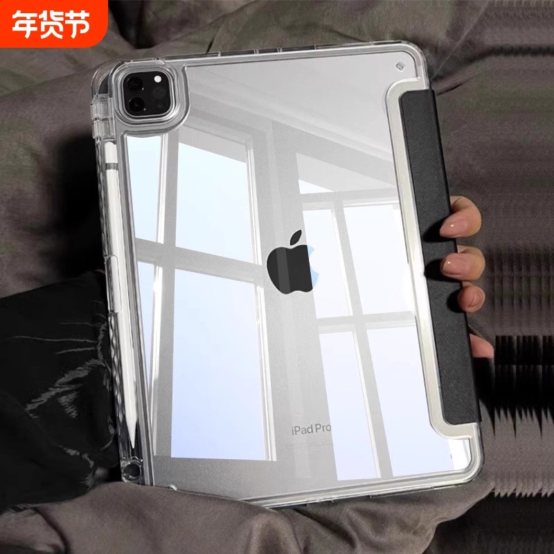 适用苹果2024ipadpro保护壳air6一体式无笔槽10代10.9亚克力12.9透明防弯9.7防摔平板10.2磁吸分离3三折mini5