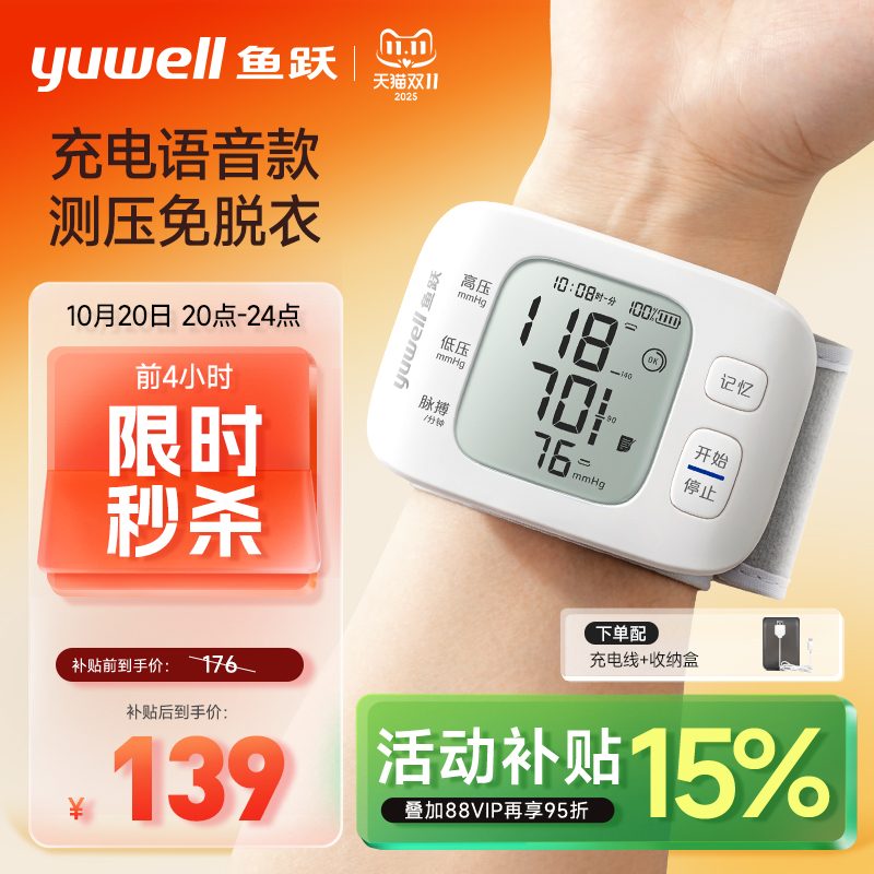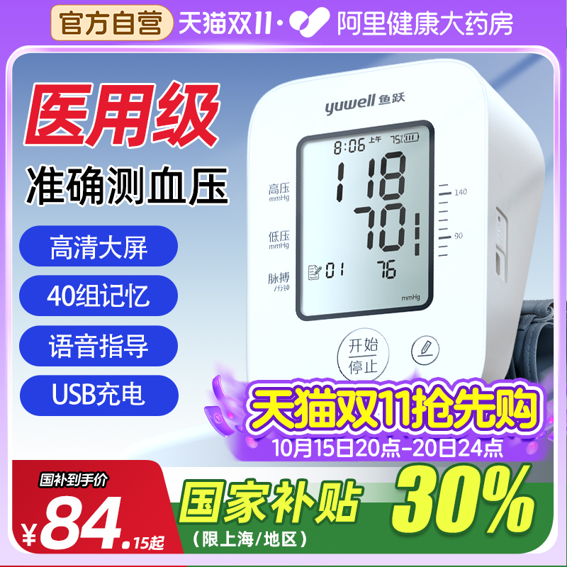 鱼跃电子血压计充电测量仪家用老人高精准测压仪器正品官方旗舰店