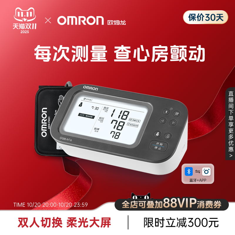 欧姆龙房颤血压计电子血压测量仪高精准家用正品医用臂式测压仪器