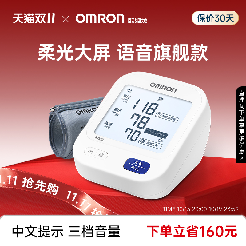 欧姆龙语音血压计电子血压测量仪高精准家用高血压医用臂式测压仪