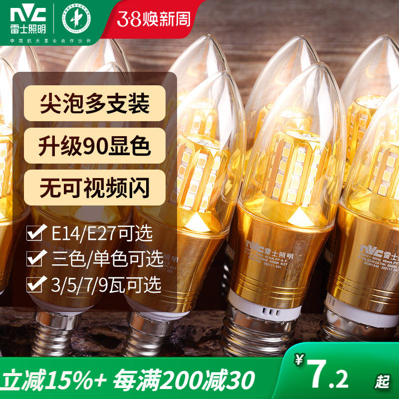 雷士照明led灯泡e14e27螺口节能灯超亮玉米灯吊灯光源三色蜡烛灯