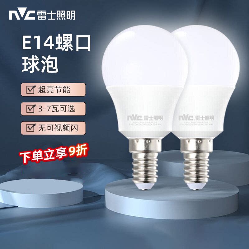 雷士照明螺纹灯泡e14小螺口节能灯小头超亮家用吊灯led光源蜡烛灯