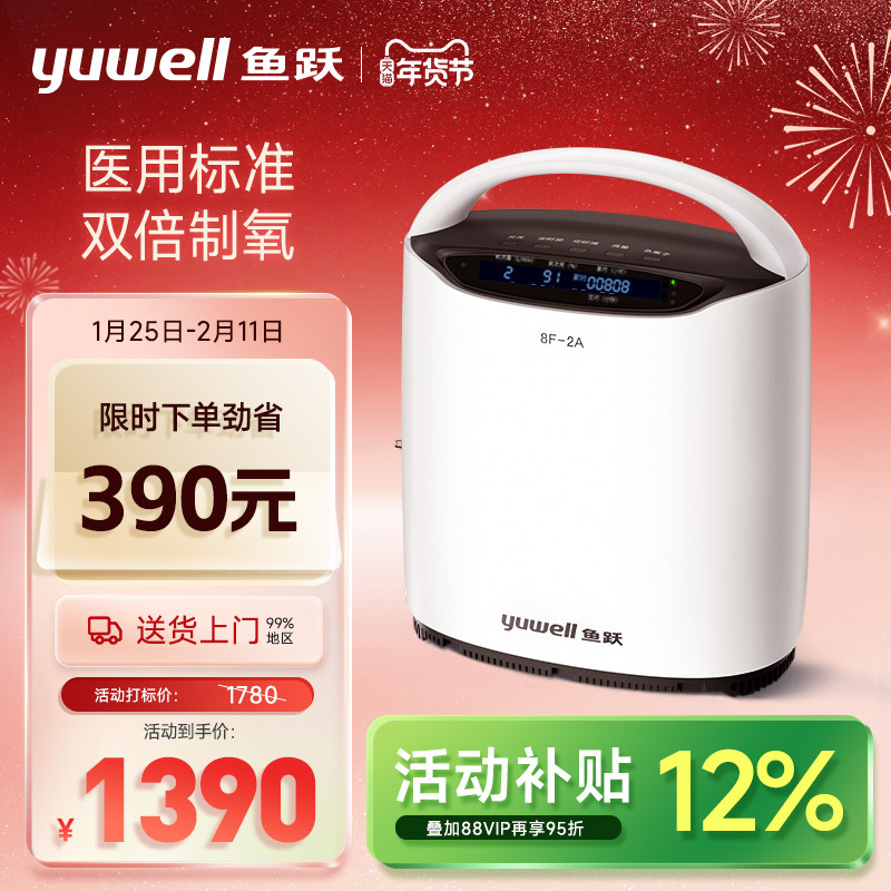 鱼跃制氧机家用吸氧机2L升医用老人孕妇氧气机小巧智能遥控8F-2A