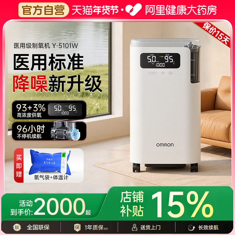 【阿里自营】欧姆龙制氧机家用老人吸氧机孕妇5L高浓度静音5102W