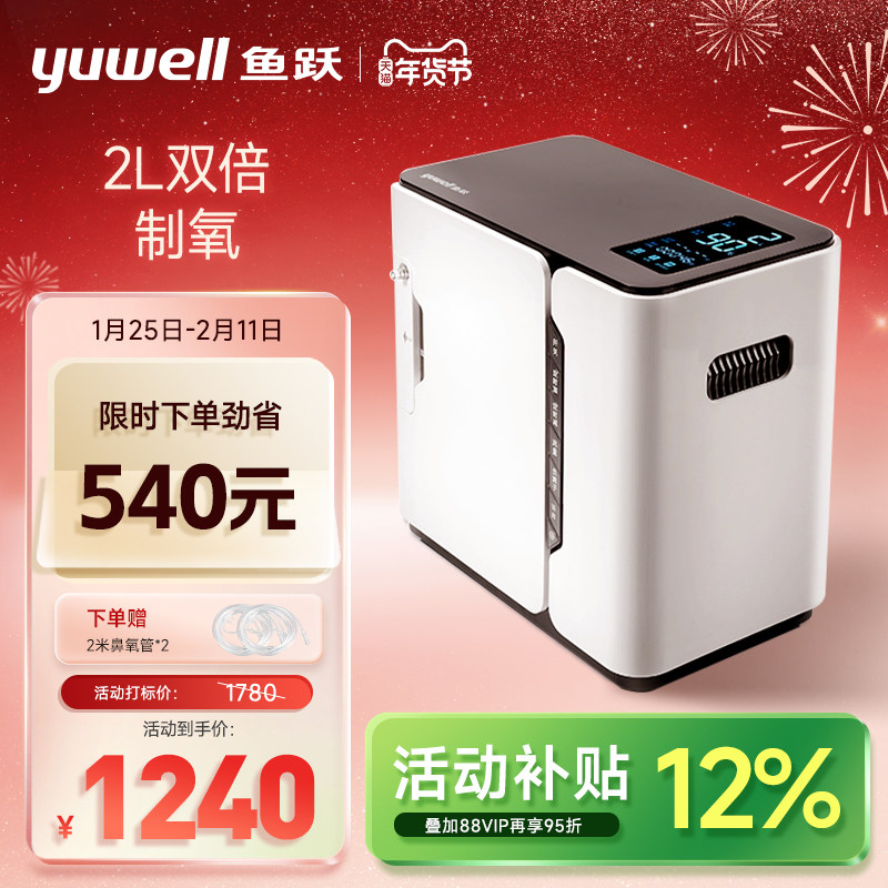 鱼跃牌2L双倍制氧机大流量老人孕妇家用小型吸氧机雾化语音播报