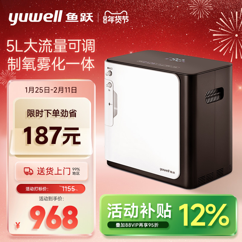 鱼跃制氧机5升L家用吸氧老人雾化老年人家庭小型氧气机官方旗舰店