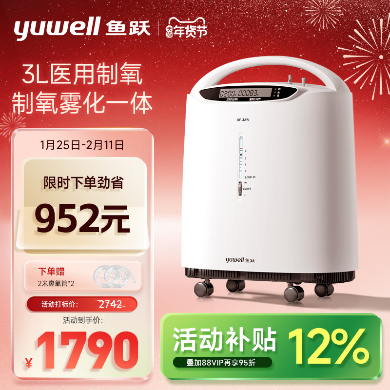 鱼跃制氧机医用家用老人吸氧机轻音3L雾化一体官方旗舰店8F-3AW