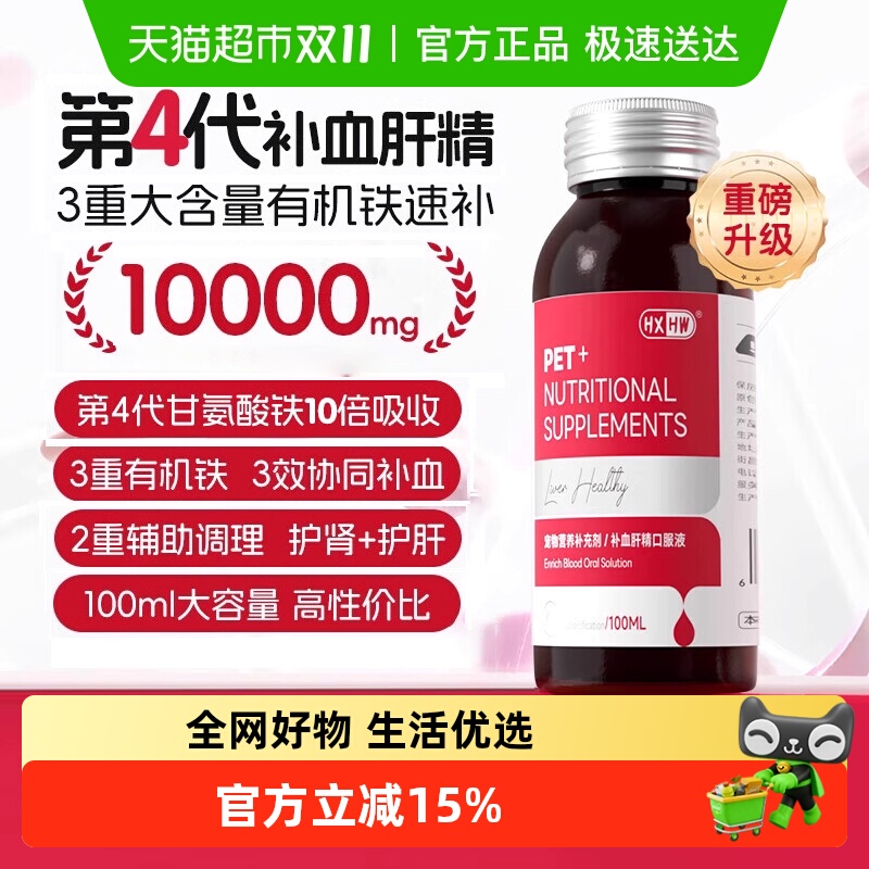 hxhw补血肝精猫咪狗狗贫血术后产后生血补铁大剂量宠物营养补充剂