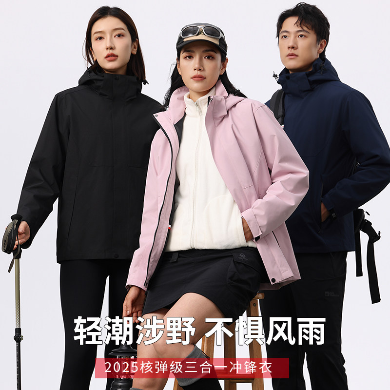 吉普2025新款三合一可拆卸户外冲锋上衣女款防风防水男士外套定制