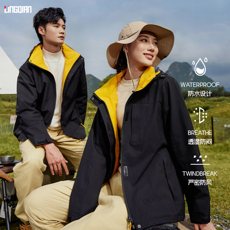 - 户外冲锋衣男女三合一