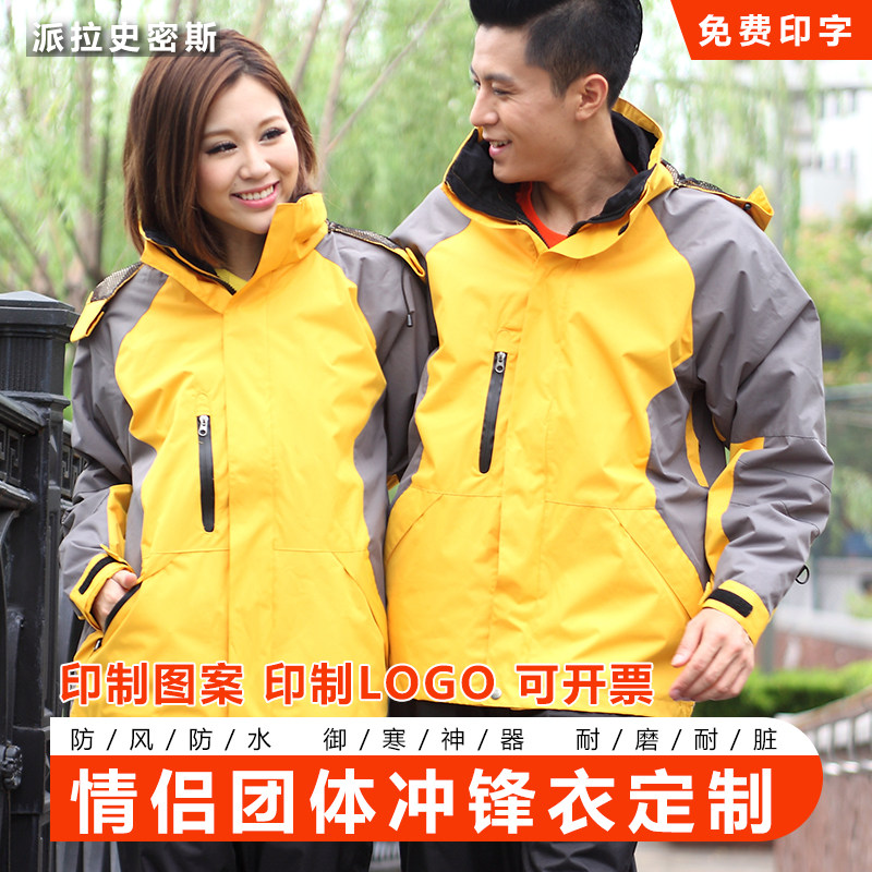 冲锋衣定制印logo印字团队工作服男女春秋薄款三合一加绒加厚外套