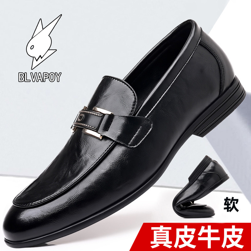 花花公子男鞋2026新款厚底增高休闲男士皮鞋真皮英伦风西装商务鞋