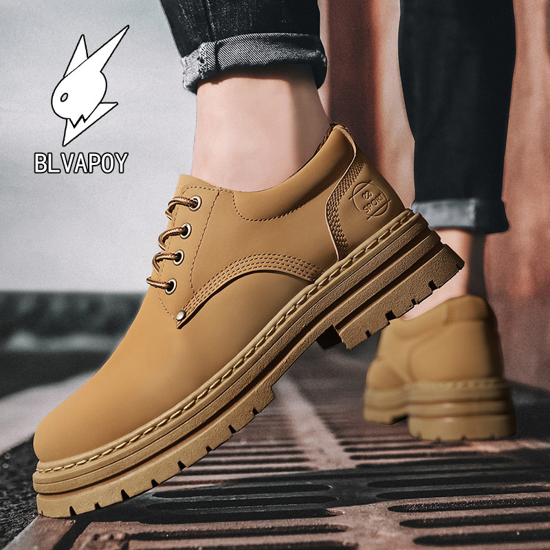 花花公子男鞋真皮百搭潮流英伦风复古工装皮鞋男士低帮软底休闲鞋