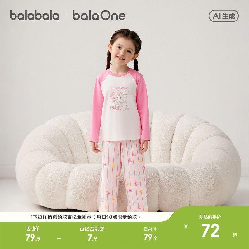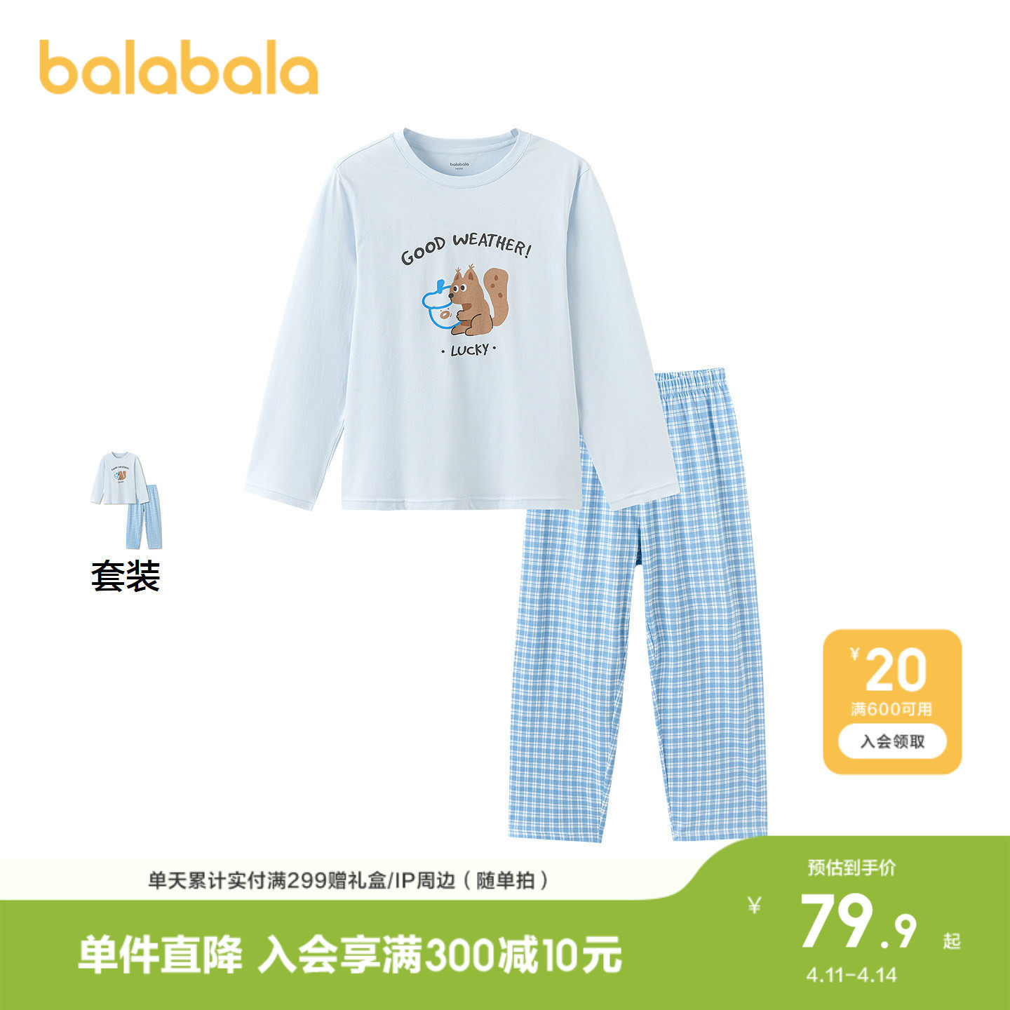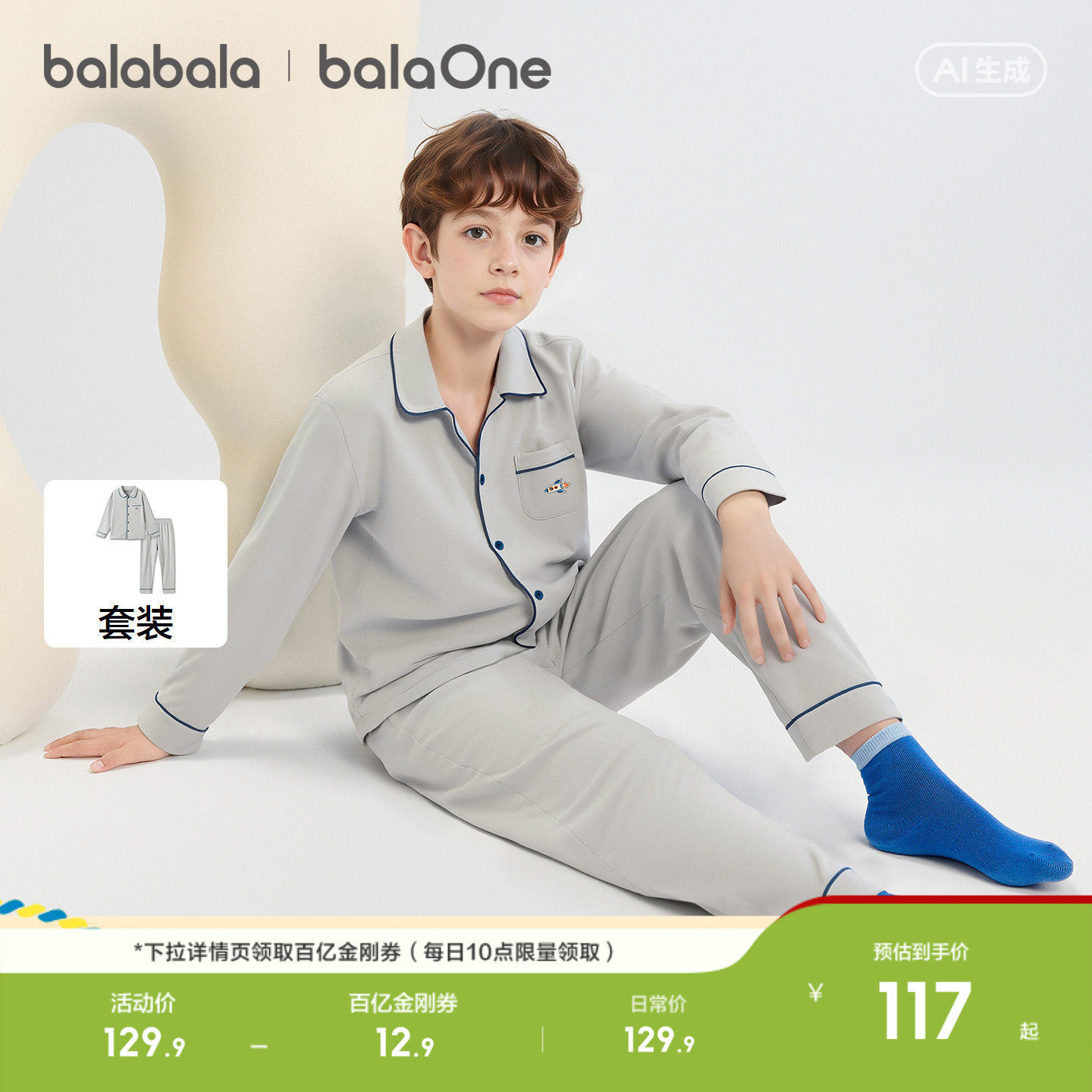 巴拉巴拉儿童睡衣套装纯棉男童女童家居服2026年新款可外出100%棉