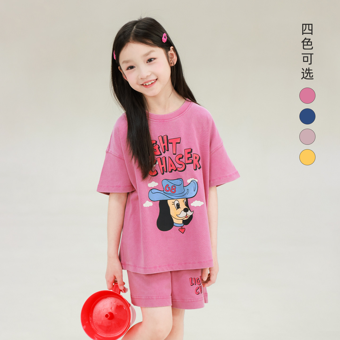 大耳象女童卡通印花休闲T恤/短裤套装2026夏季新款宝儿纯棉短袖薄