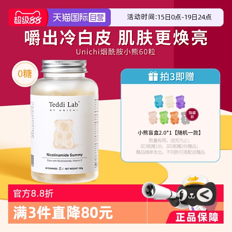 【自营】Unichi烟酰胺美白小熊软糖亮肤内服玫瑰果精华teddilab