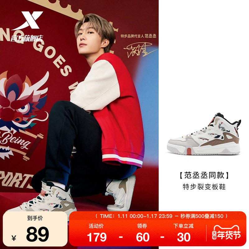 范丞丞同款|特步裂变板鞋新年休闲鞋运动鞋男鞋高帮保暖情侣百搭