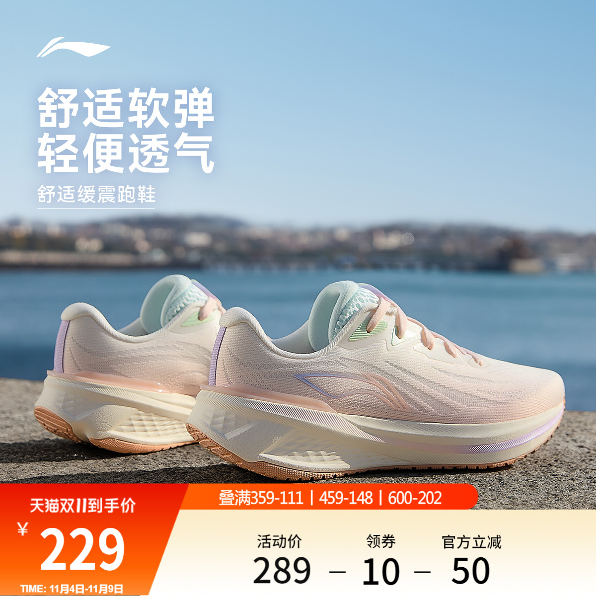 李宁轻风丨跑步鞋女新款跳绳训练健身减震轻便网面透气缓震运动鞋
