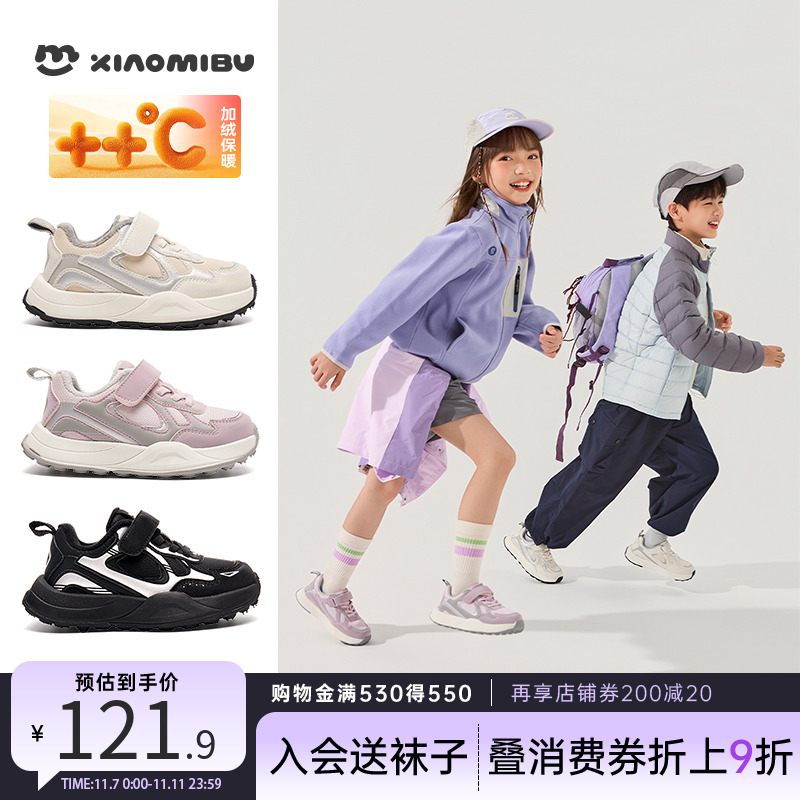 小米步儿童鞋秋冬新款加绒女童运动鞋轻便透气软底男童跑步鞋大童