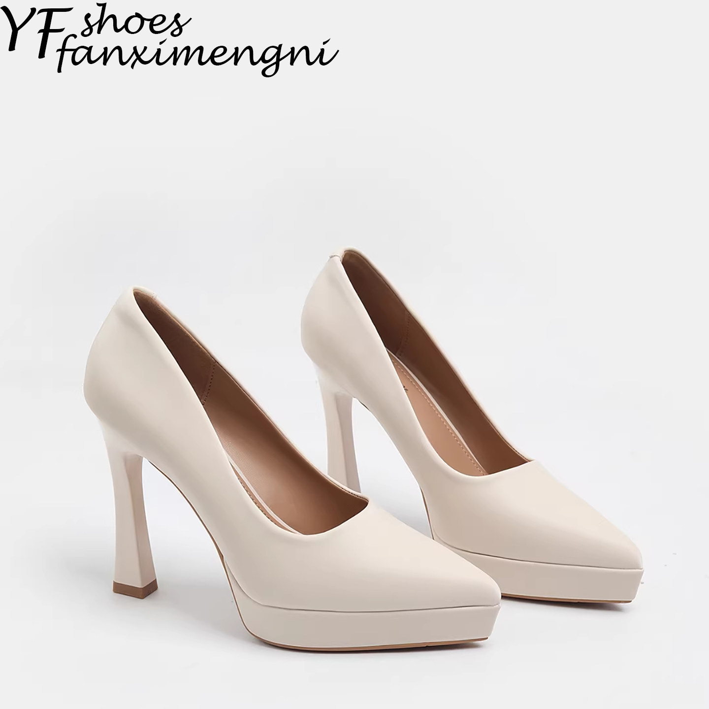 裸色防水台高跟鞋女2025年新款春秋真皮细跟气质御姐性感尖头单鞋