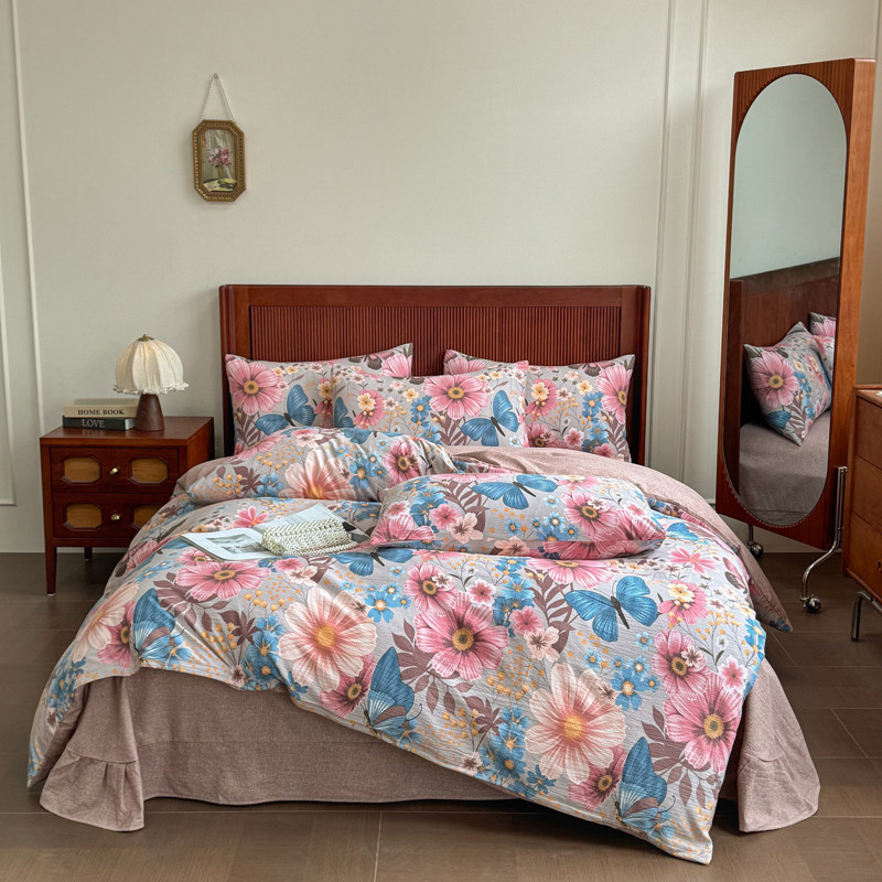 A类纯棉双层纱布四件套全棉加厚被套床单被罩床笠学生宿舍三件套4
