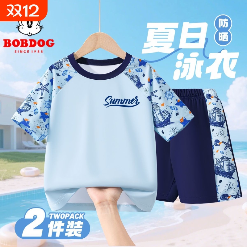 巴布豆儿童泳衣男童泳装分体防晒夏季2025新款宝宝套装游泳两件套