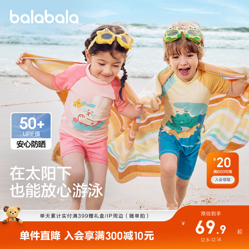 巴拉巴拉儿童泳衣男童女童宝宝连分体泳装防晒速干泡温泉潮泳衣裤