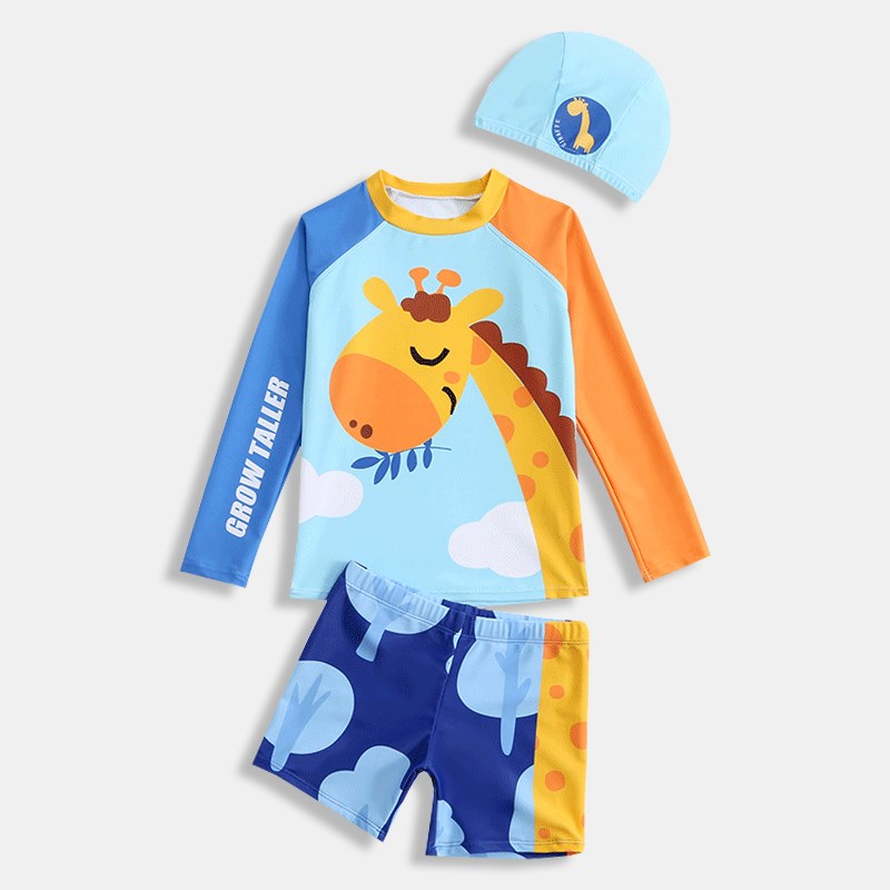 KK树儿童泳衣男童宝宝分体三件套女孩游泳衣海边沙滩防晒长袖长裤