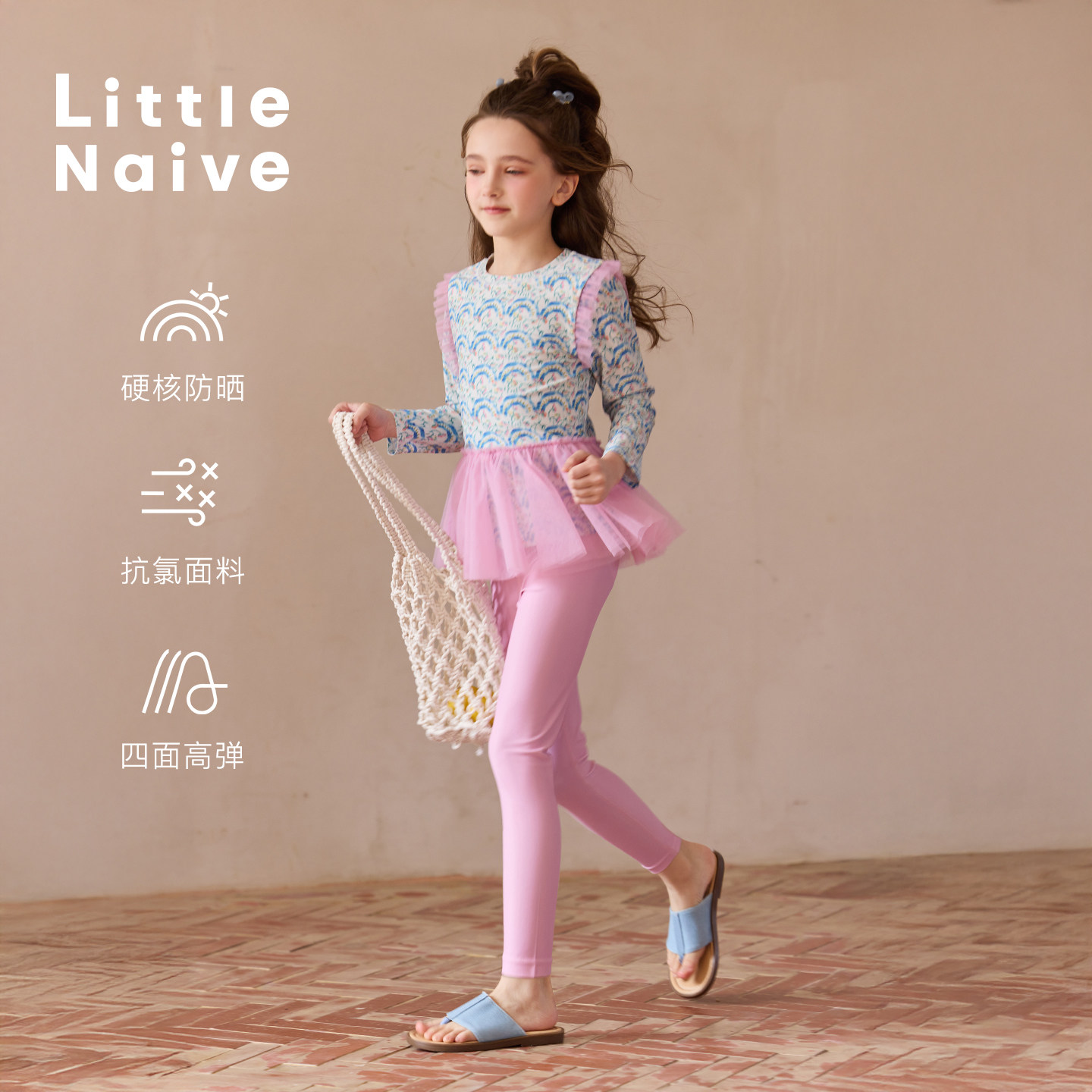 Little Naive女童泳衣防晒套装夏甜美分体游泳衣儿童女印花泳装