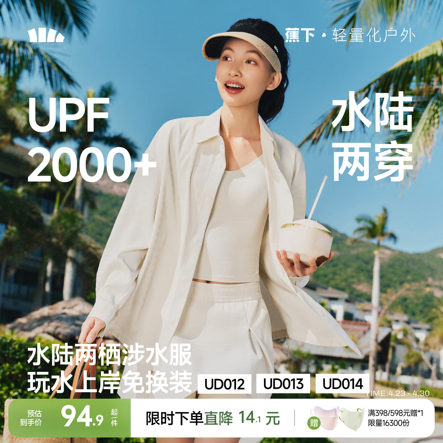 蕉下分体泳衣女士防晒速干漂流溯溪户外徒步冲浪可拆帽涉水服套装