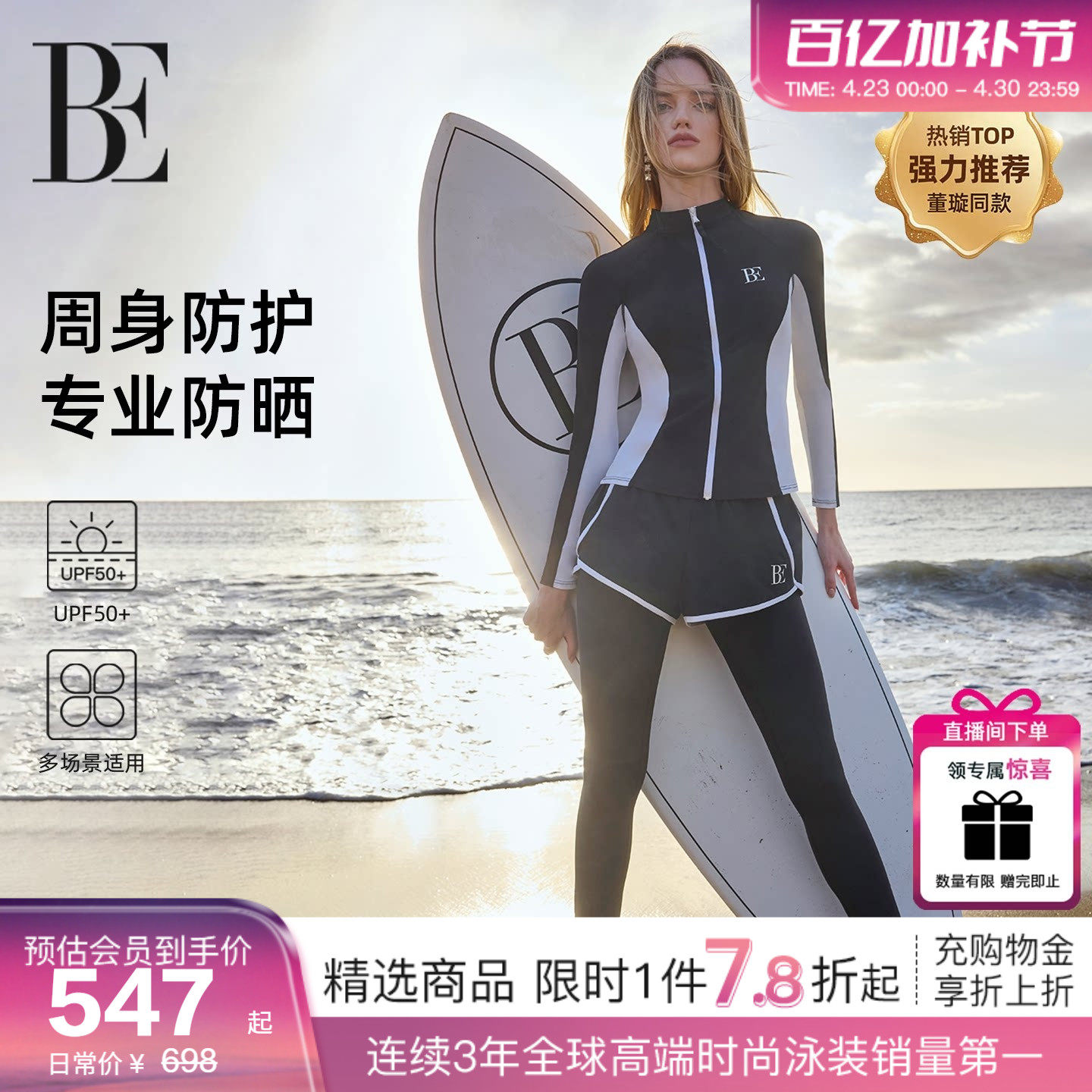 【董璇同款】BE范德安冲浪系列分体泳衣女保守防晒长袖套装度假